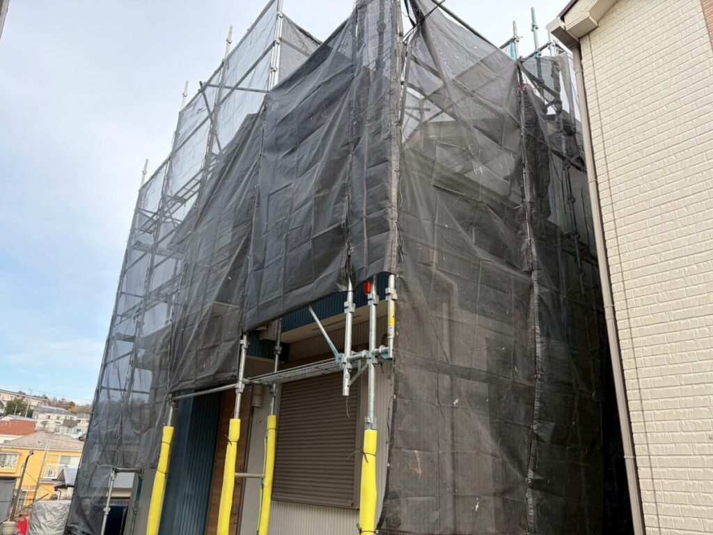 そして近隣への配慮(飛散防止ネットによる粉塵・塗料飛散防止)