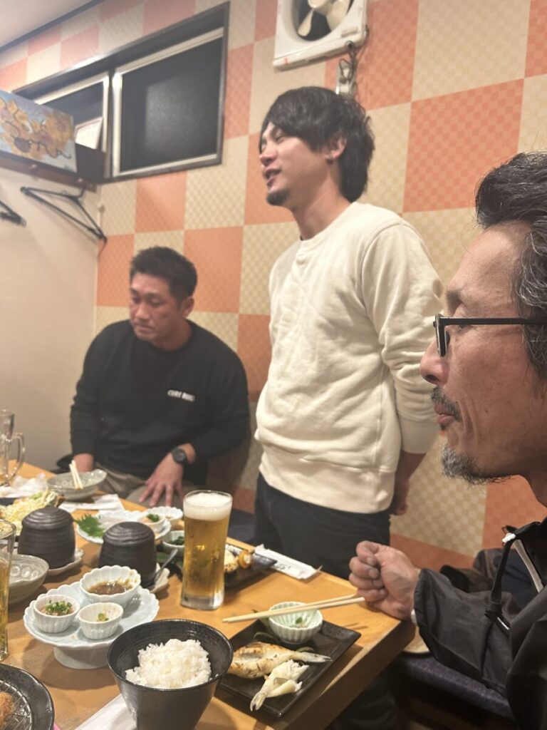 今回の忘年会には、職人・事務スタッフ・配送担当など、日頃現場を支えるメンバーが全員集合しました。