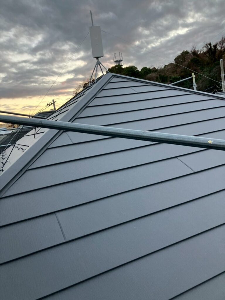 完了後に下から見上げた屋根は、ツヤもラインもバッチリです!
