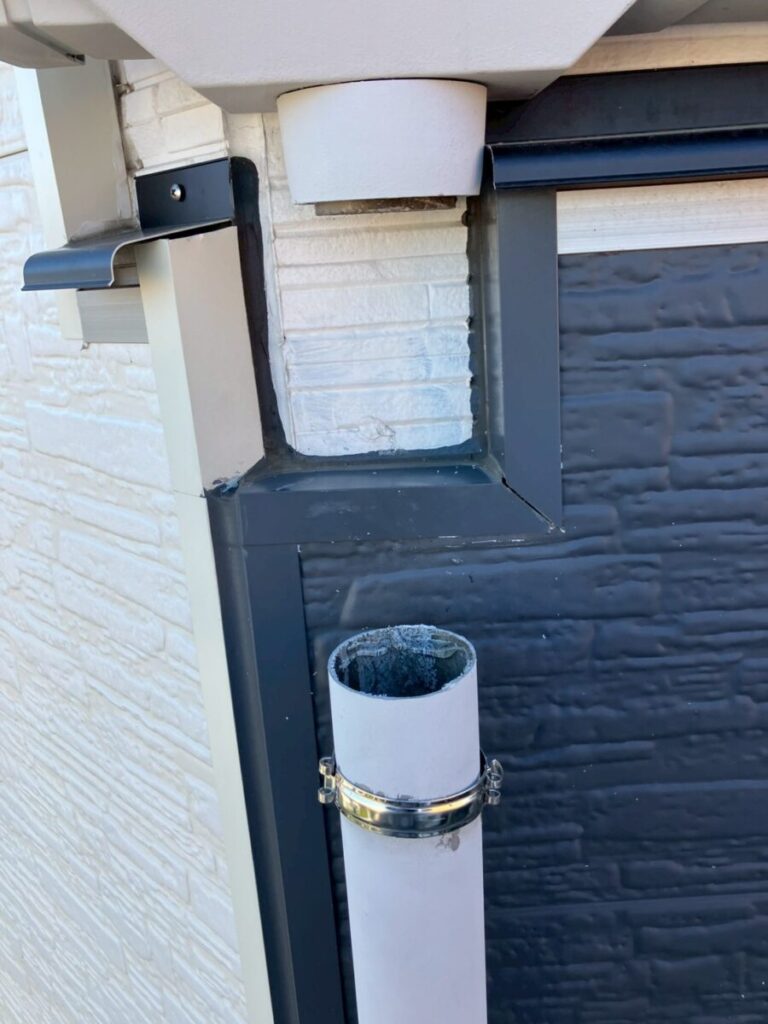 集水器と竪樋を正しい位置・角度でガッチリ接続しました。
