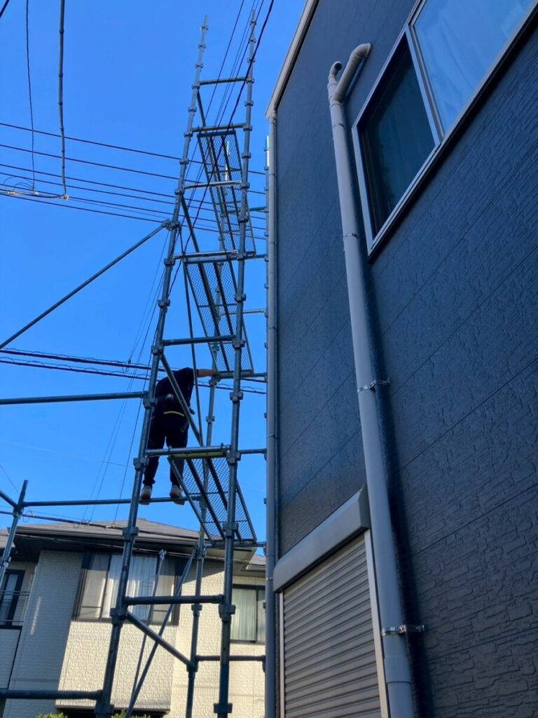 作業はもちろん「安全第一!」しっかり足場を組んでから施工スタートです。