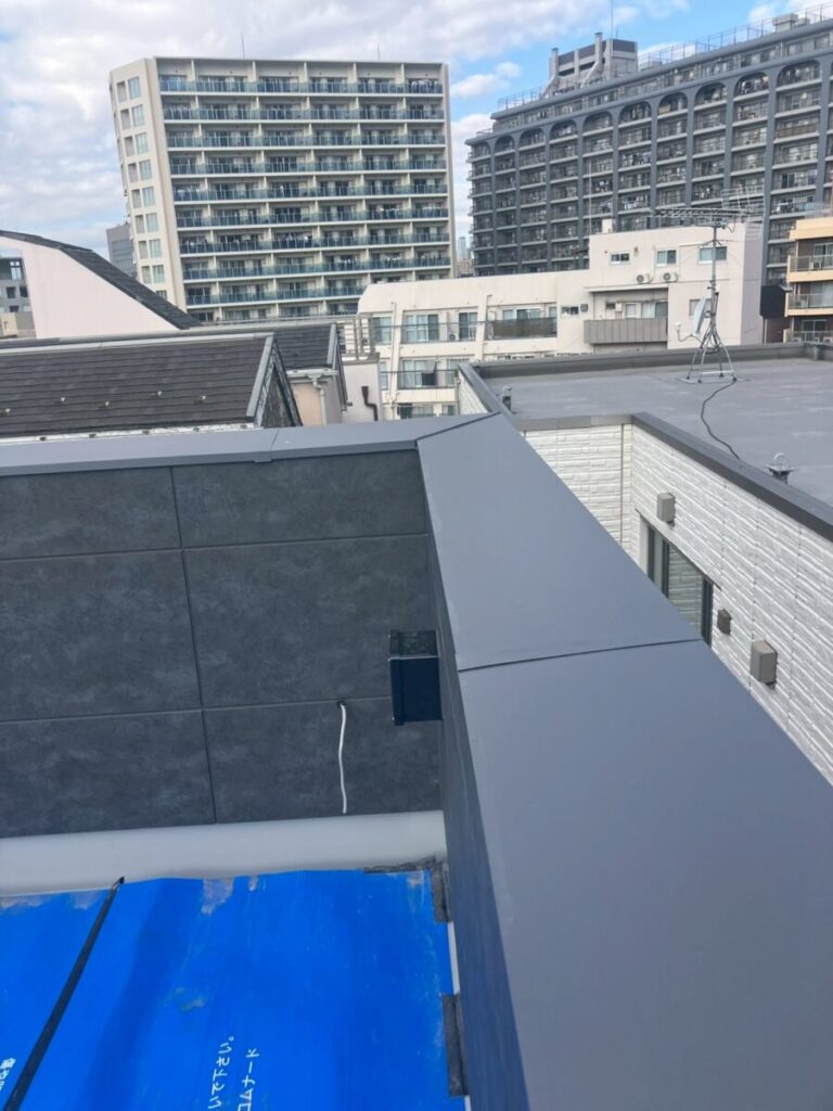 今回は、元請け案件のアパート屋上部の笠木板金取り付け工事でした!