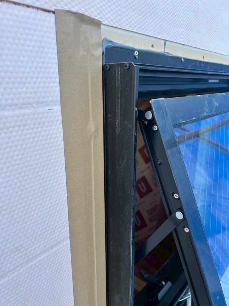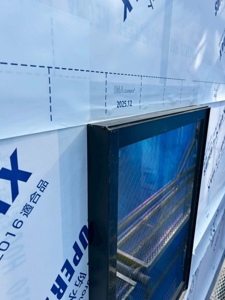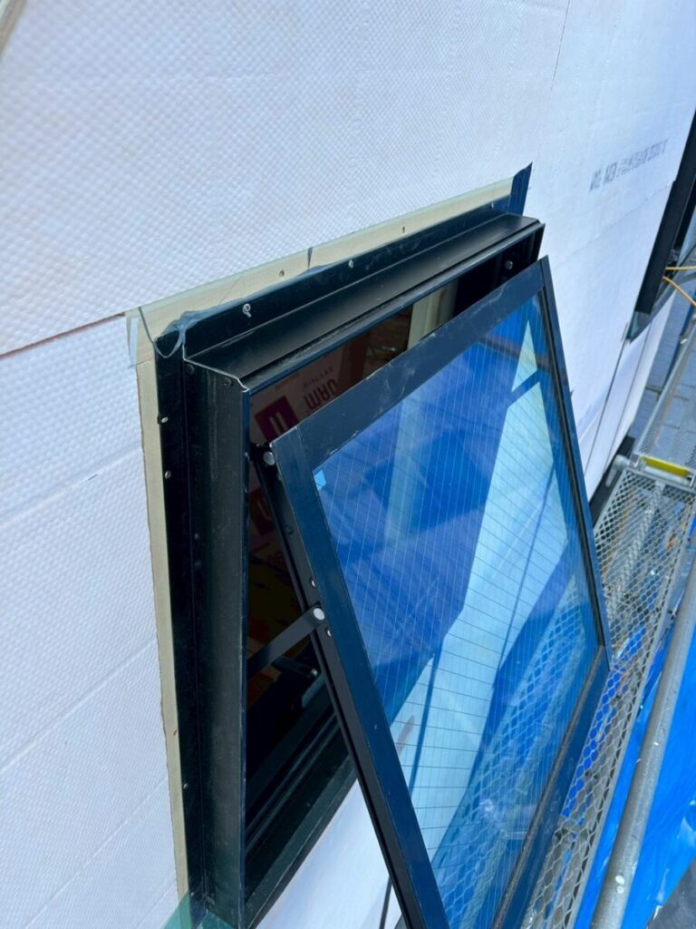 今日は、サッシ回りの防水処理をしていきます。