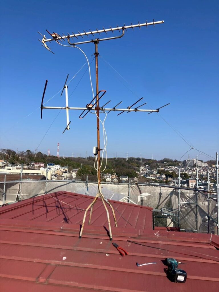 今回の現場は、すでに使っていないテレビアンテナが屋根の上にそのまま残っている状態。
