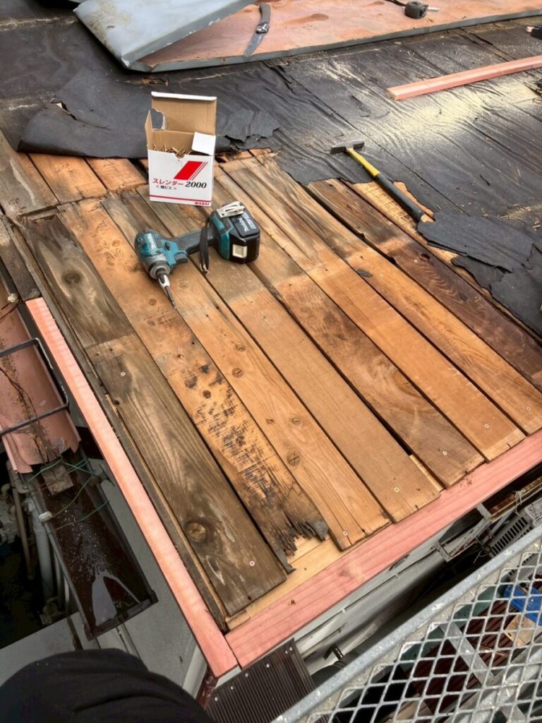 そこで今回は、既存の野地板を一度はがし、下地をしっかり補強。