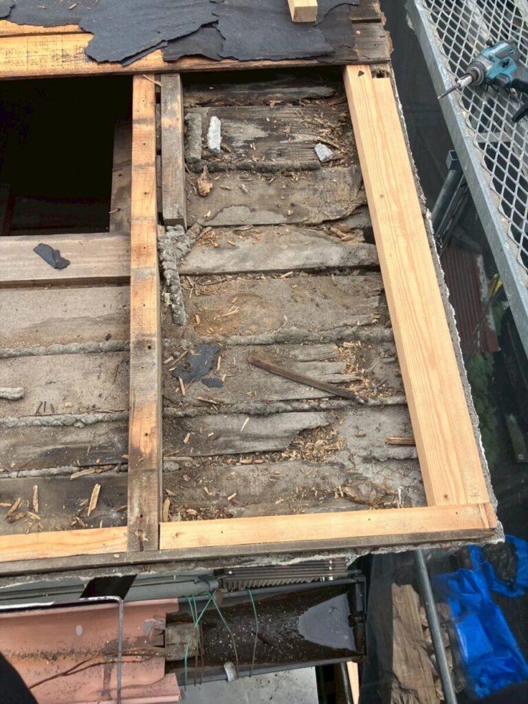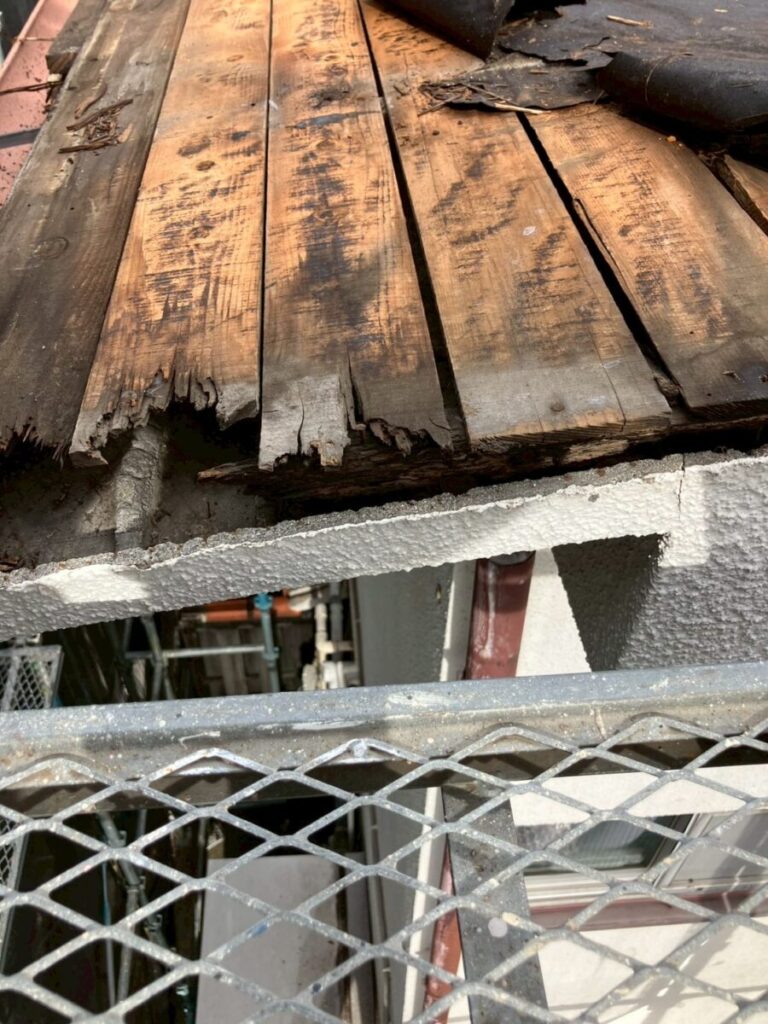 屋根材を撤去すると、やはり既存の野地板に劣化が見られました。
