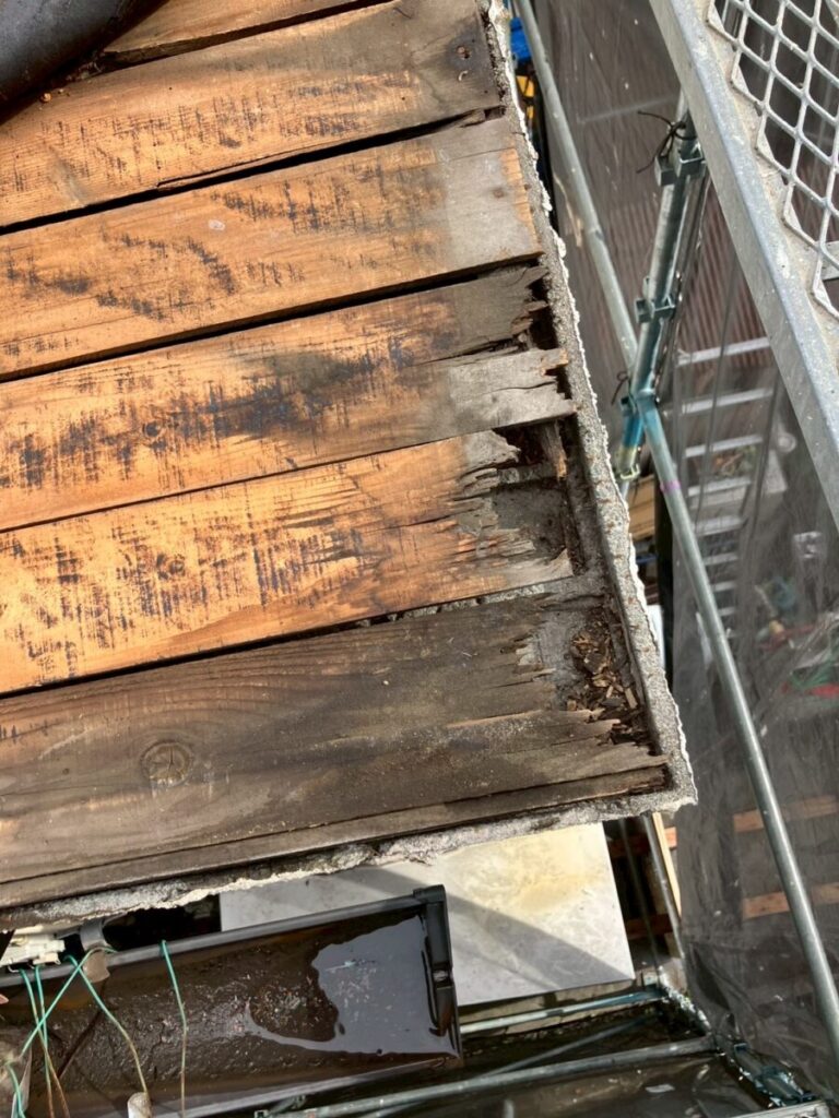 現場調査の段階で確認できたのは、すでに雨漏りが発生している状態。