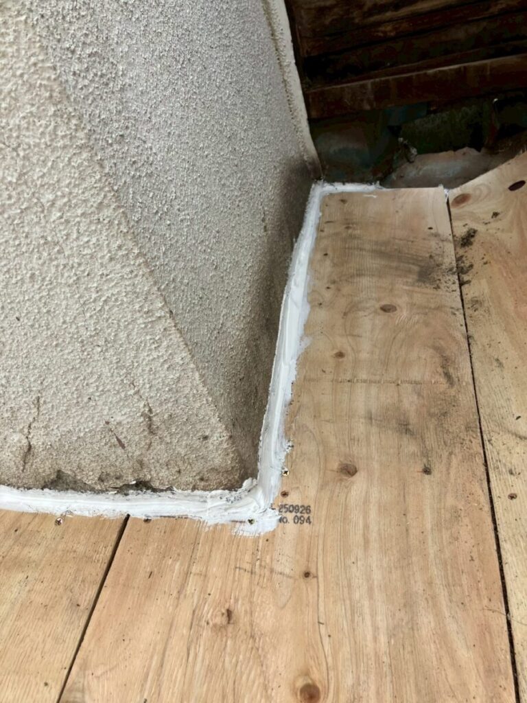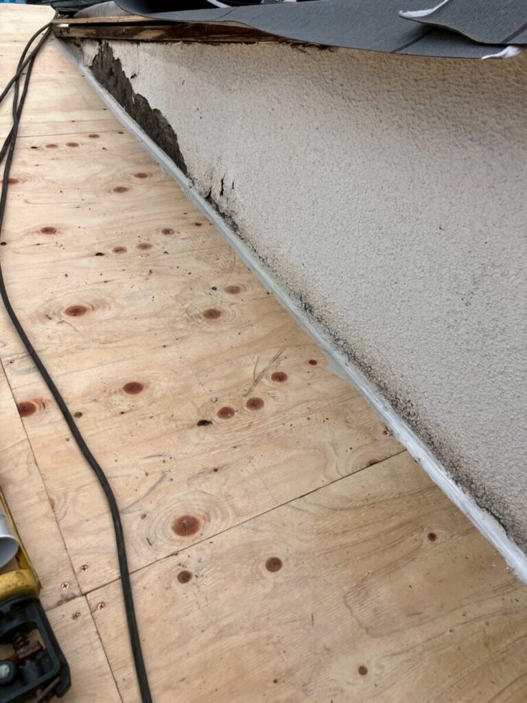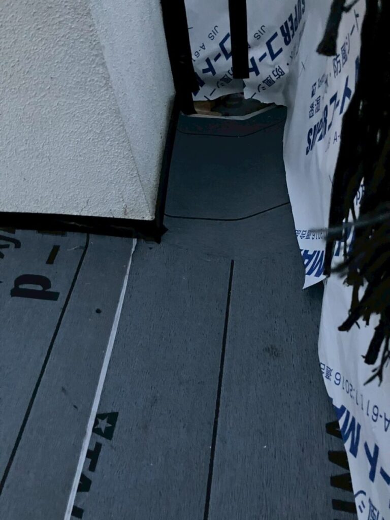 野地板と壁際の取り合い部分は、雨水が入りやすいポイントのため、コーキング処理を入念に行い防水性を高めました。