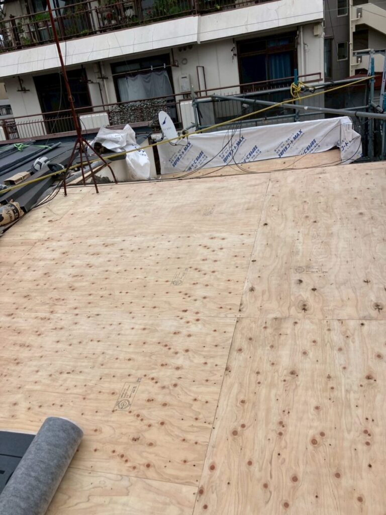 本日は町田市の屋根の葺き替え工事の続き、下地工程を進めました。