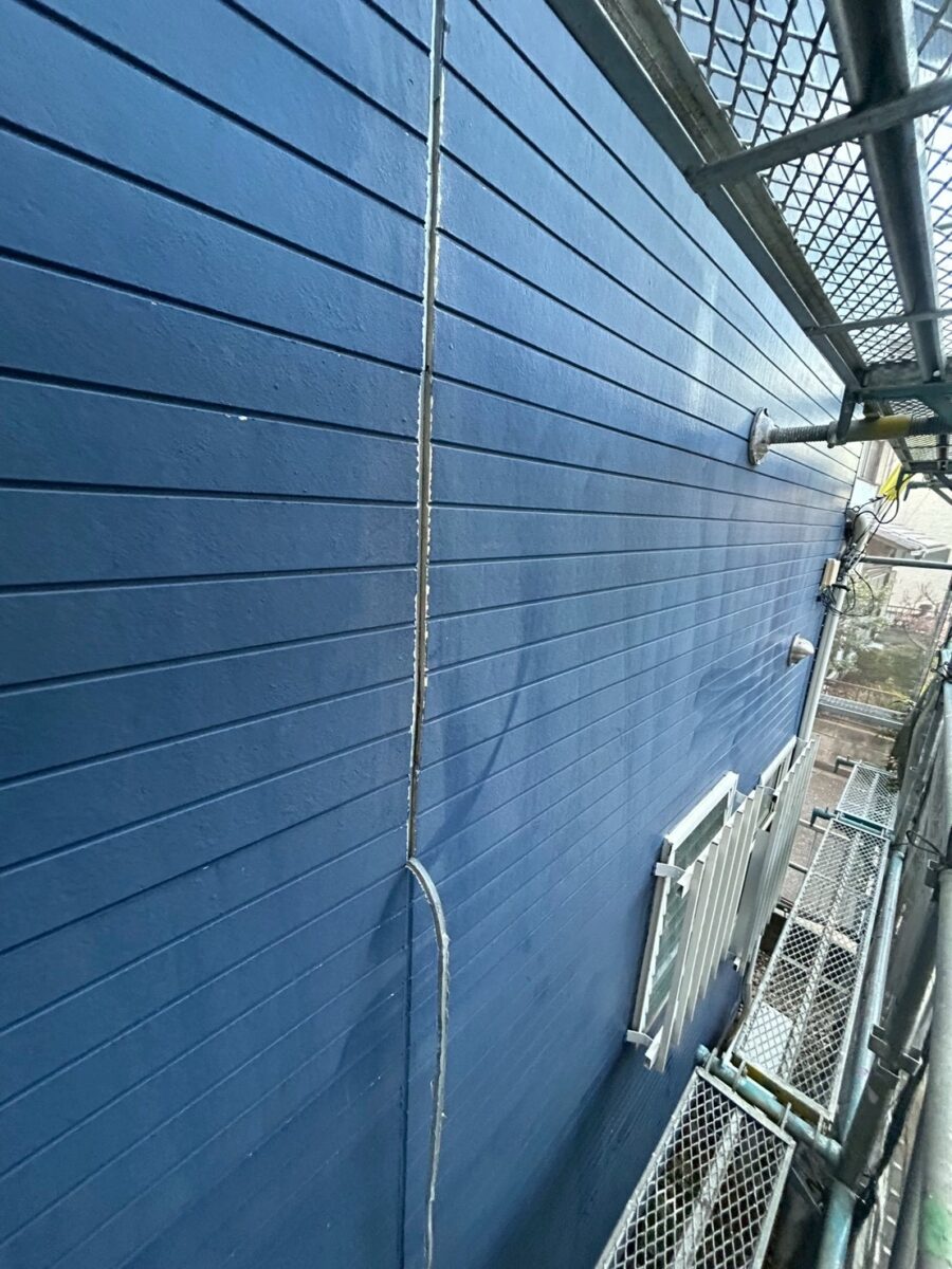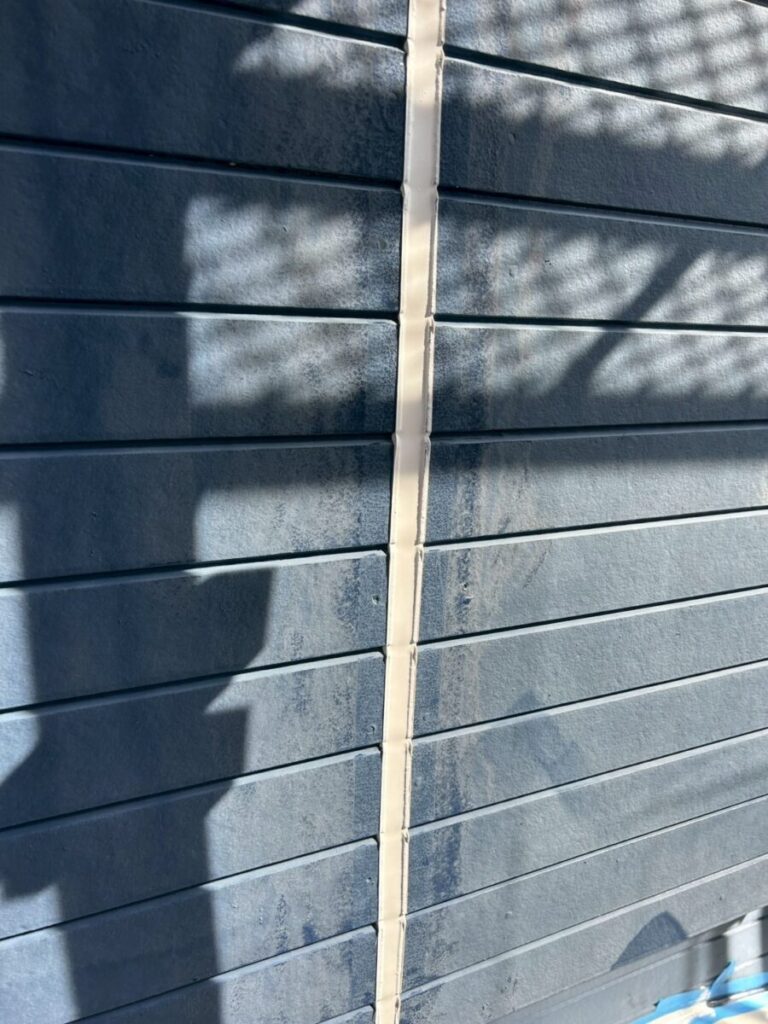 サイディングの目地に入っている既存のコーキングを、一本一本丁寧に撤去していきます。