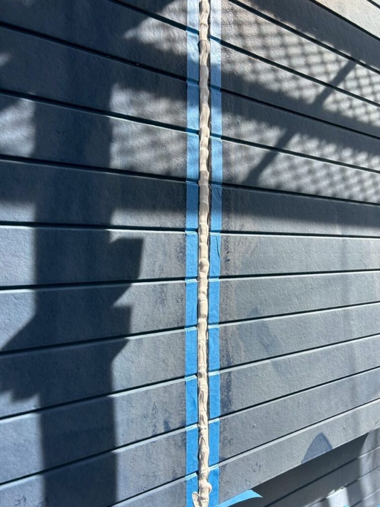 今日は、外壁塗装前の大事な下準備、コーキングの打ち換え作業を行いました。